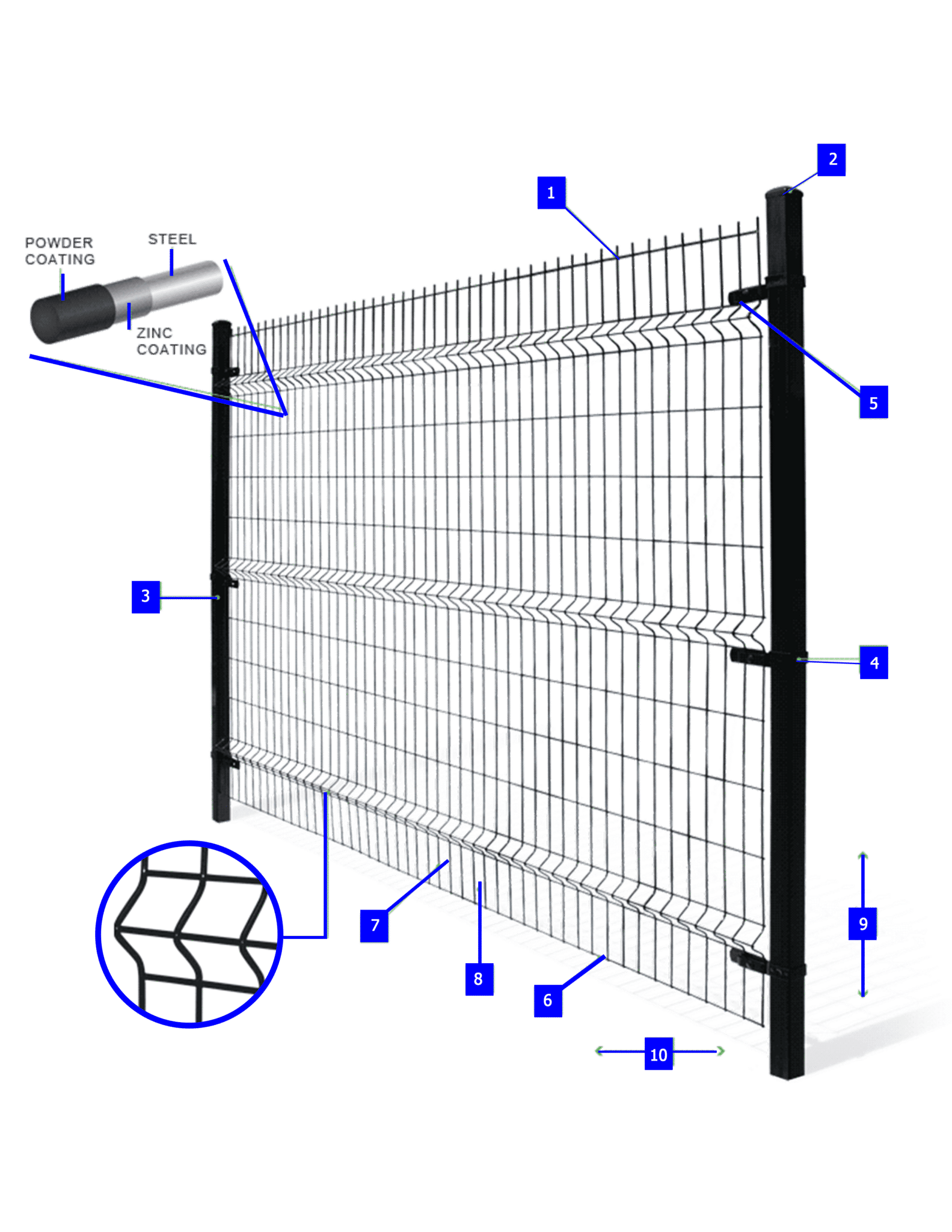 The following is included in each Welded Wire Fence Panel. Please contact us for any customizations.